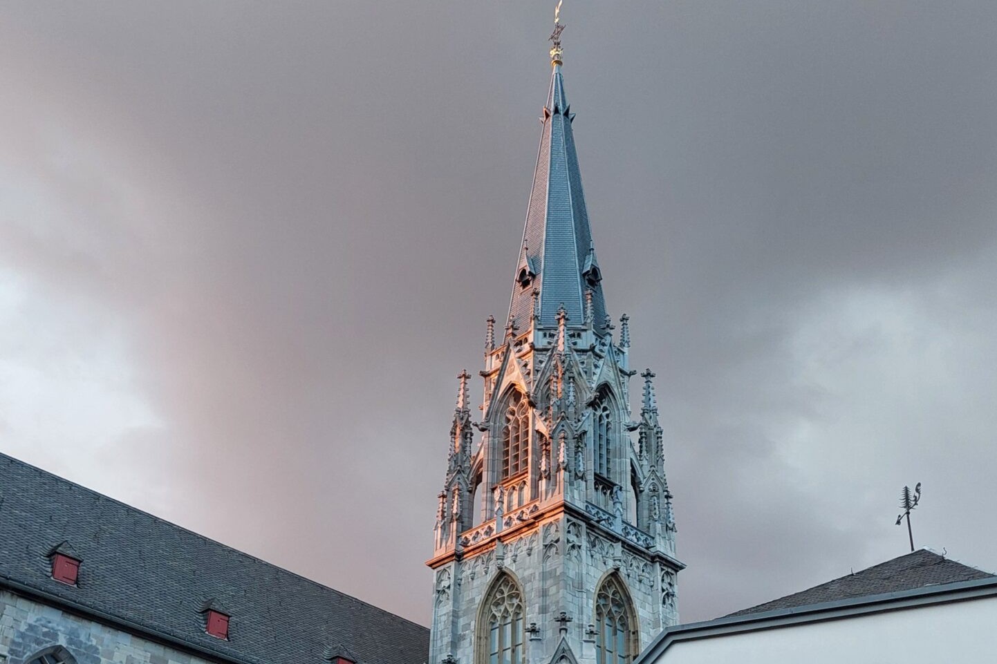 Die ruhigsten Orte schlechthin: Kirchen! Egal, ob gläubig oder nicht, Kirchen bieten allen, die sie suchen, Stille zum Durchatmen. Obwohl im Aachener Dom auf Ruhe geachtet wird, findet der Trubel der Innenstadt auch als Besucherstrom ins Oktogon – was natürlich nicht heißen soll, dass Ruhesuchende im Dom nicht gut aufgehoben sind. Aber wer beim In-sich-Hineinhorchen weniger Menschen um sich herum haben möchte, kann die Kirche St. Foillan (siehe Fotos oben und Titelbild) auf der anderen Seite des Münsterplatzes besuchen – übrigens die einzige Kirche in Deutschland, die nach dem in Belgien verstorbenen frühmittelalterlichen Heiligen aus Irland (oder Schottland) benannt ist. Ebenfalls bemerkenswert an St. Foillan: Die Kirche hat im 2. Weltkrieg großen Schaden erlitten und besteht nun auf der einen Seite aus älterer, auf der anderen aus Nachkriegsarchitektur.